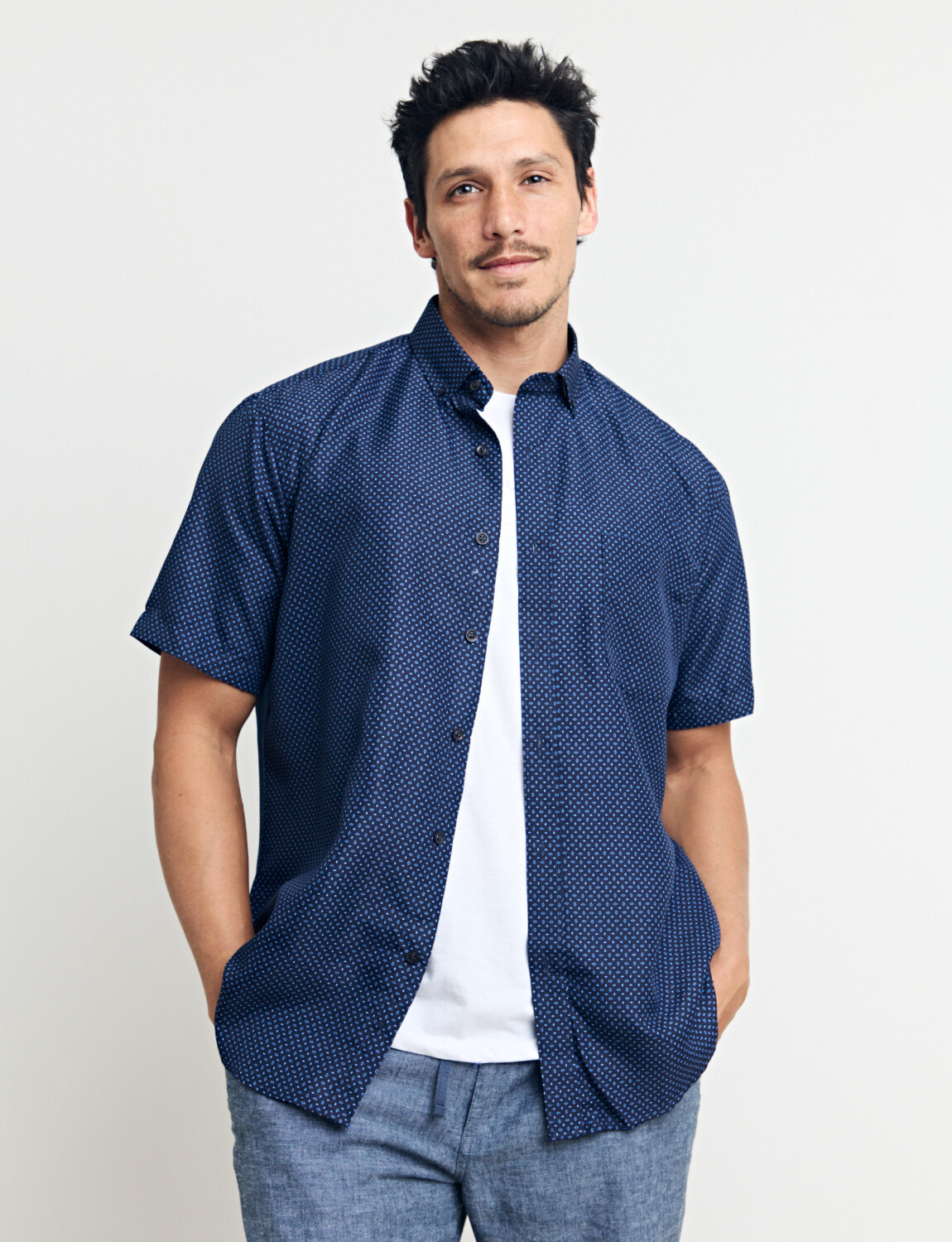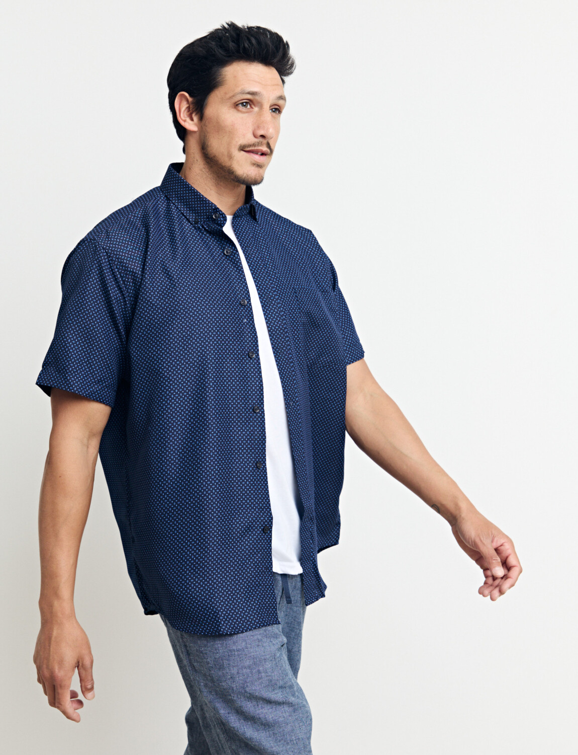 CAMISA HARRINGTON LABEL - Azul Osc/piedra