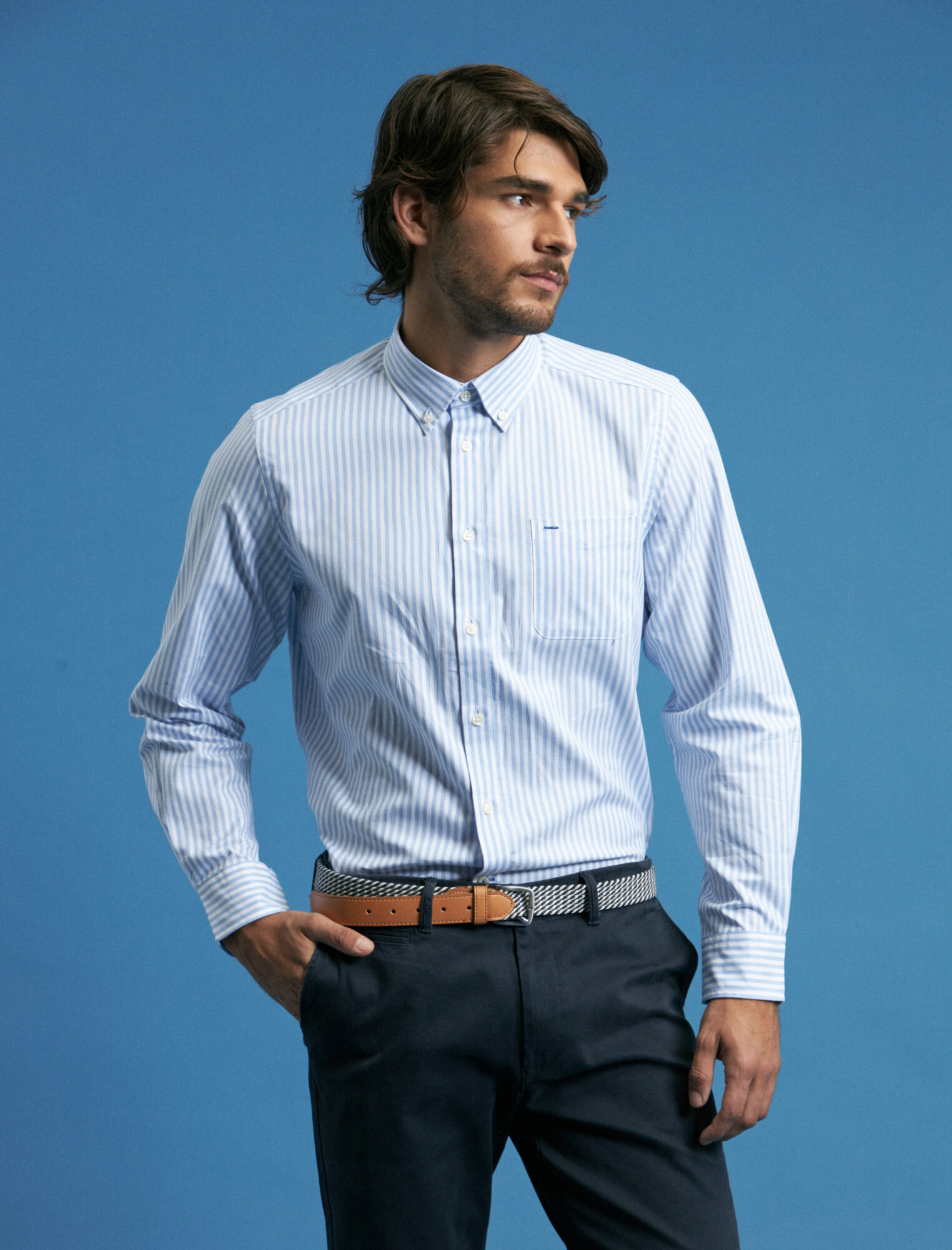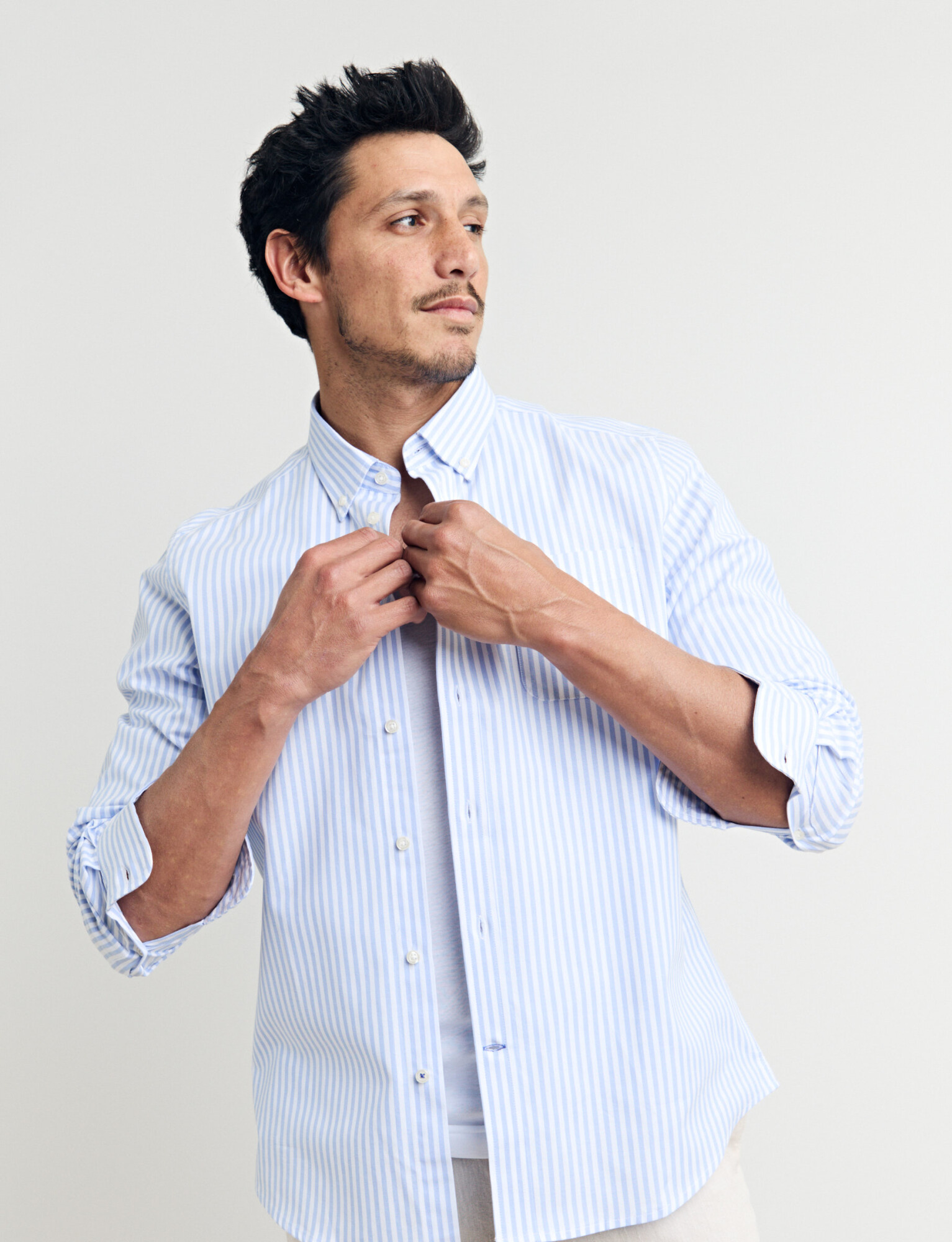 CAMISA HARRINGTON LABEL - Blanco/celeste