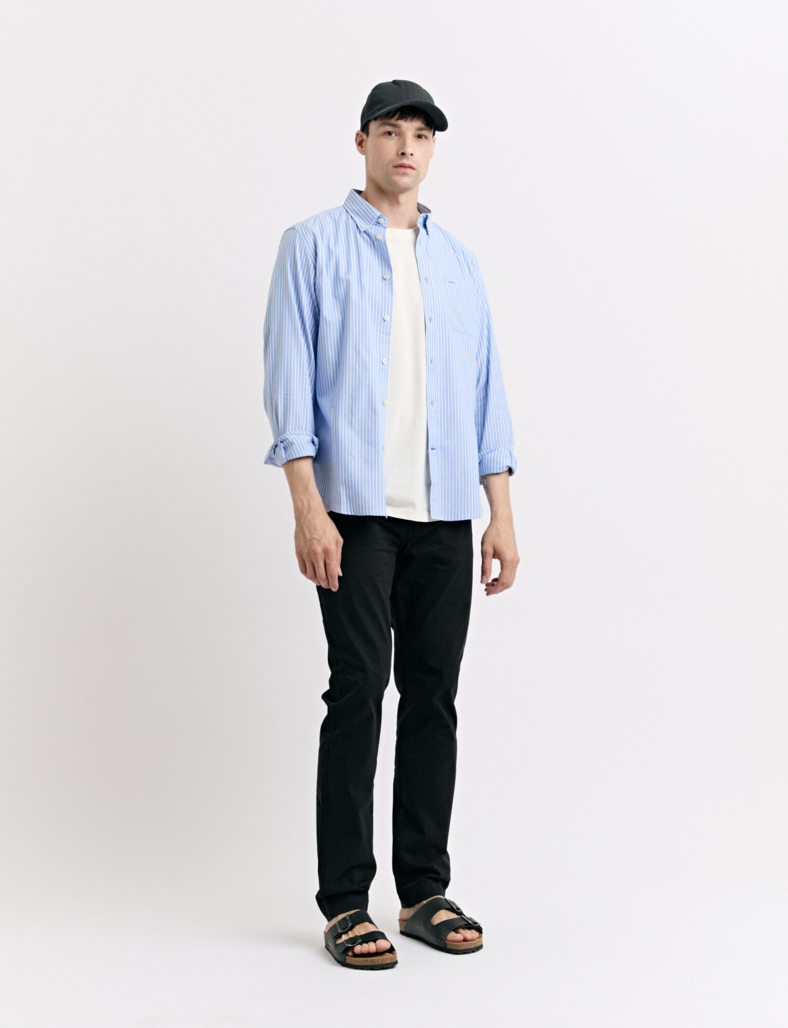 CAMISA HARRINGTON LABEL - Celeste/blanco