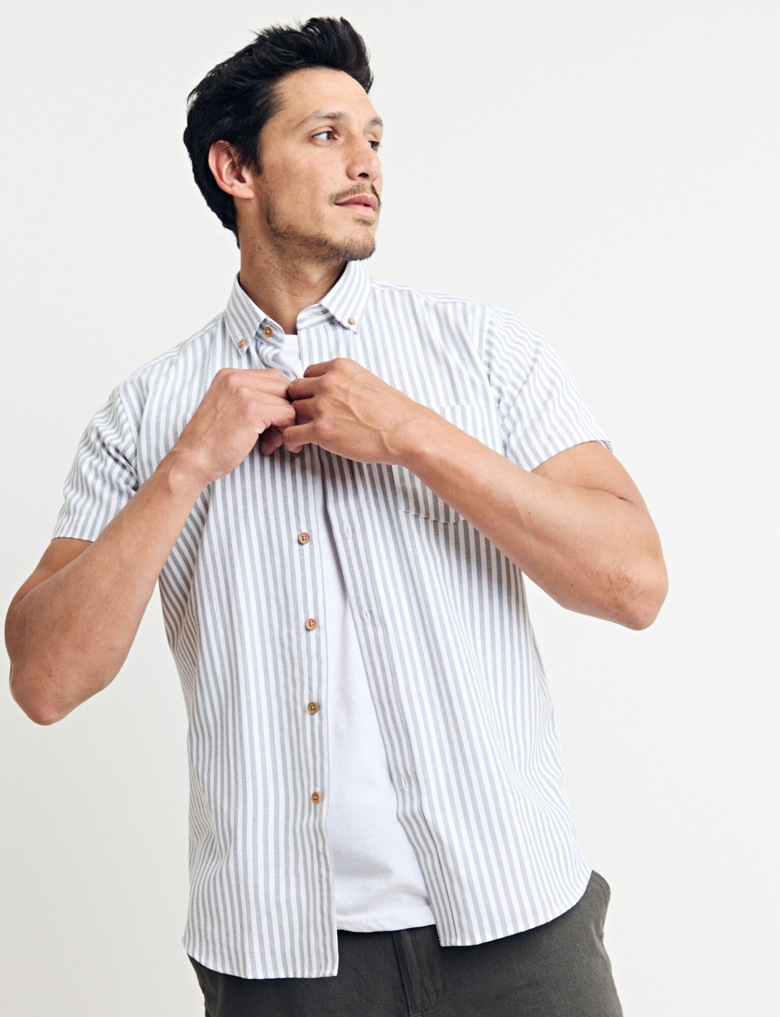 CAMISA HARRINGTON LABEL - Kaki / Blanco