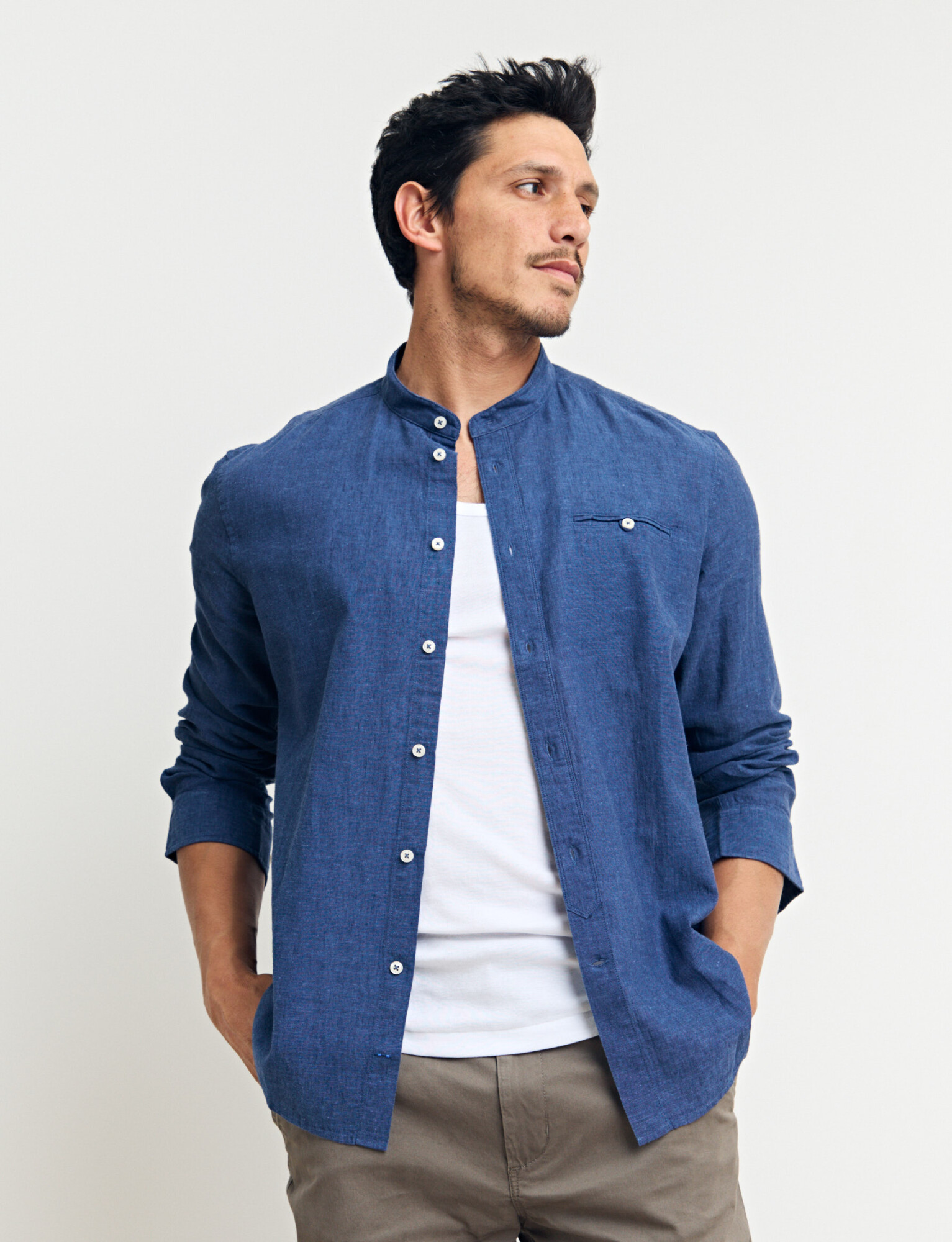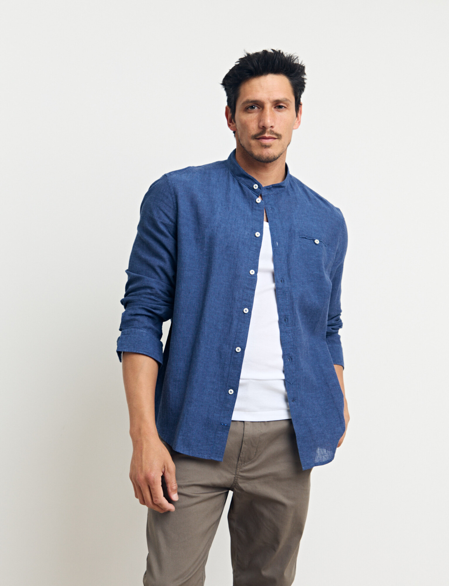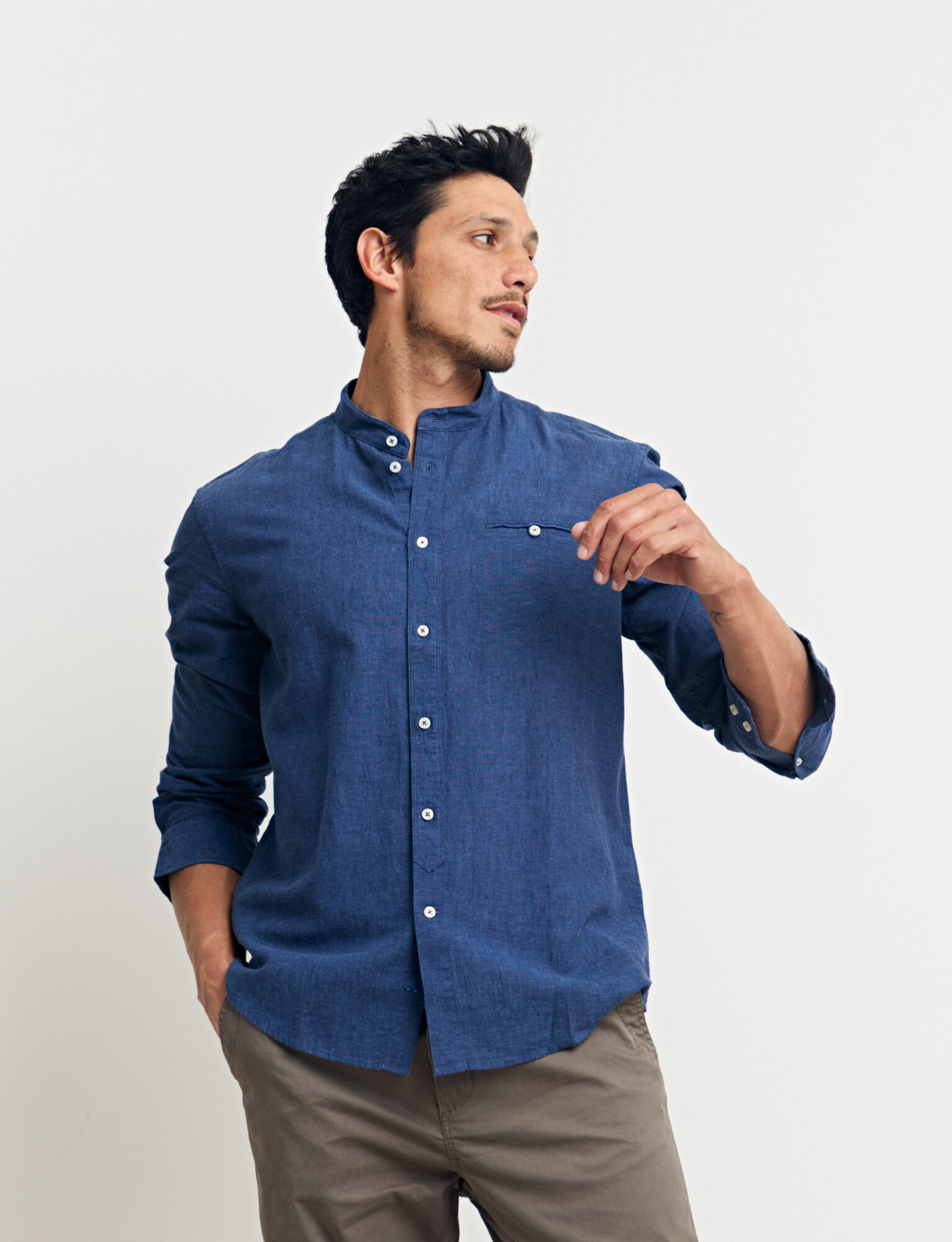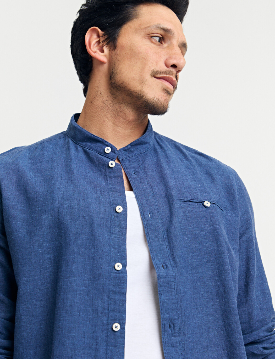CAMISA HARRINGTON LABEL LINO - Azul Piedra