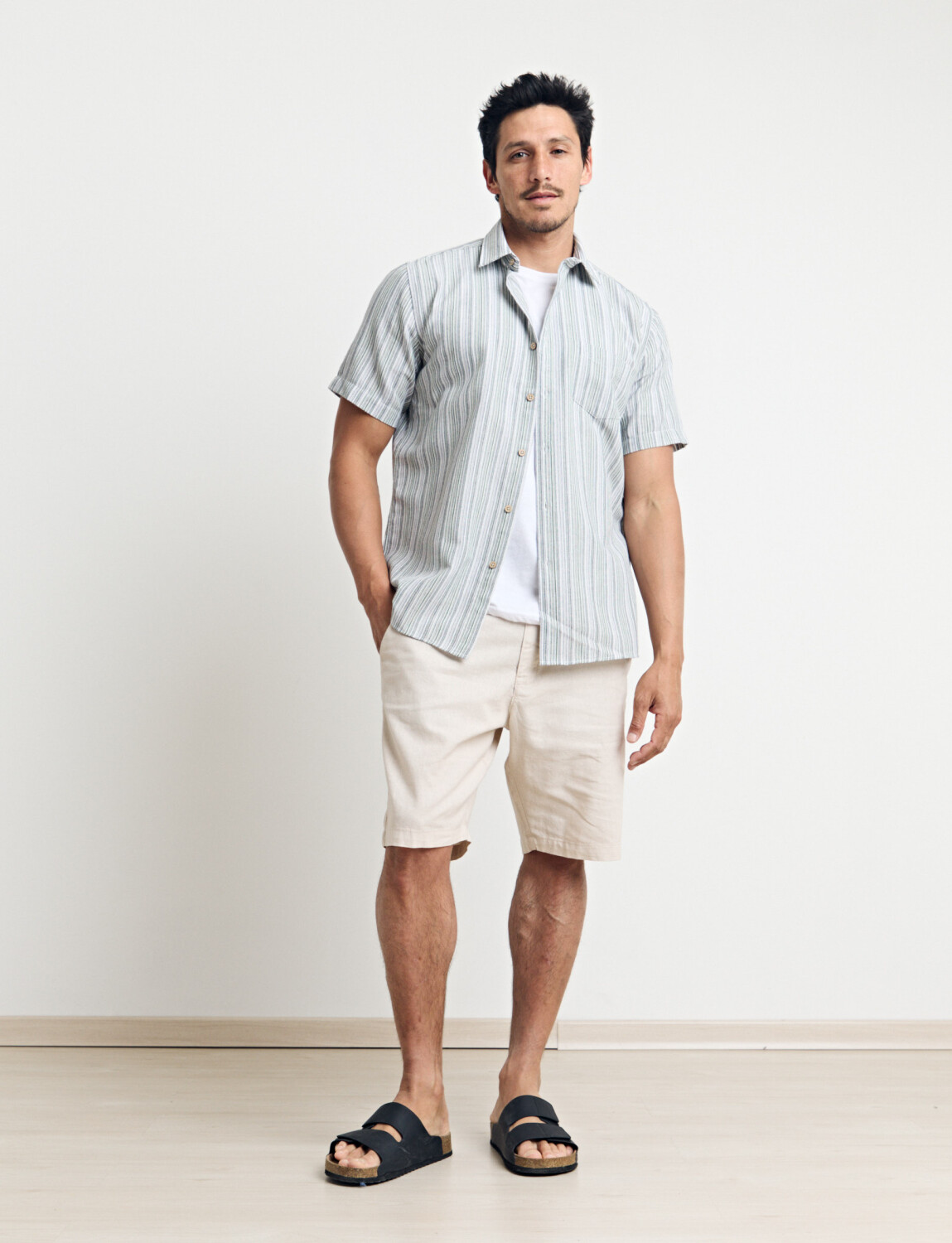 CAMISA HARRINGTON LABEL - Natural/azul
