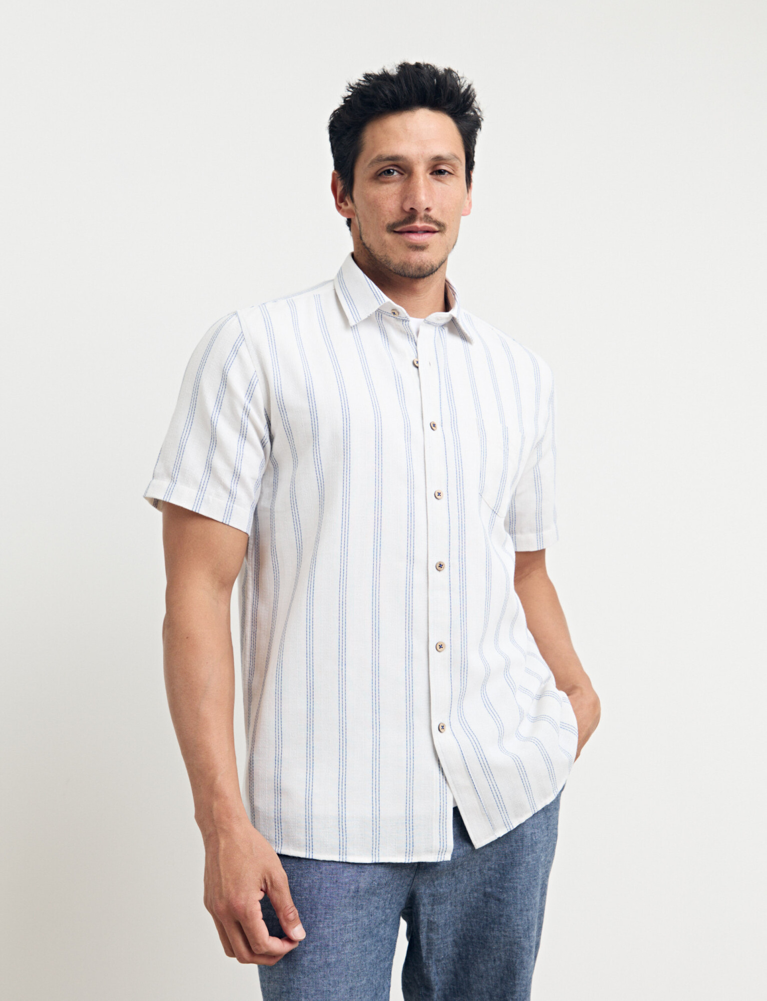 CAMISA HARRINGTON LABEL - Natural/celeste