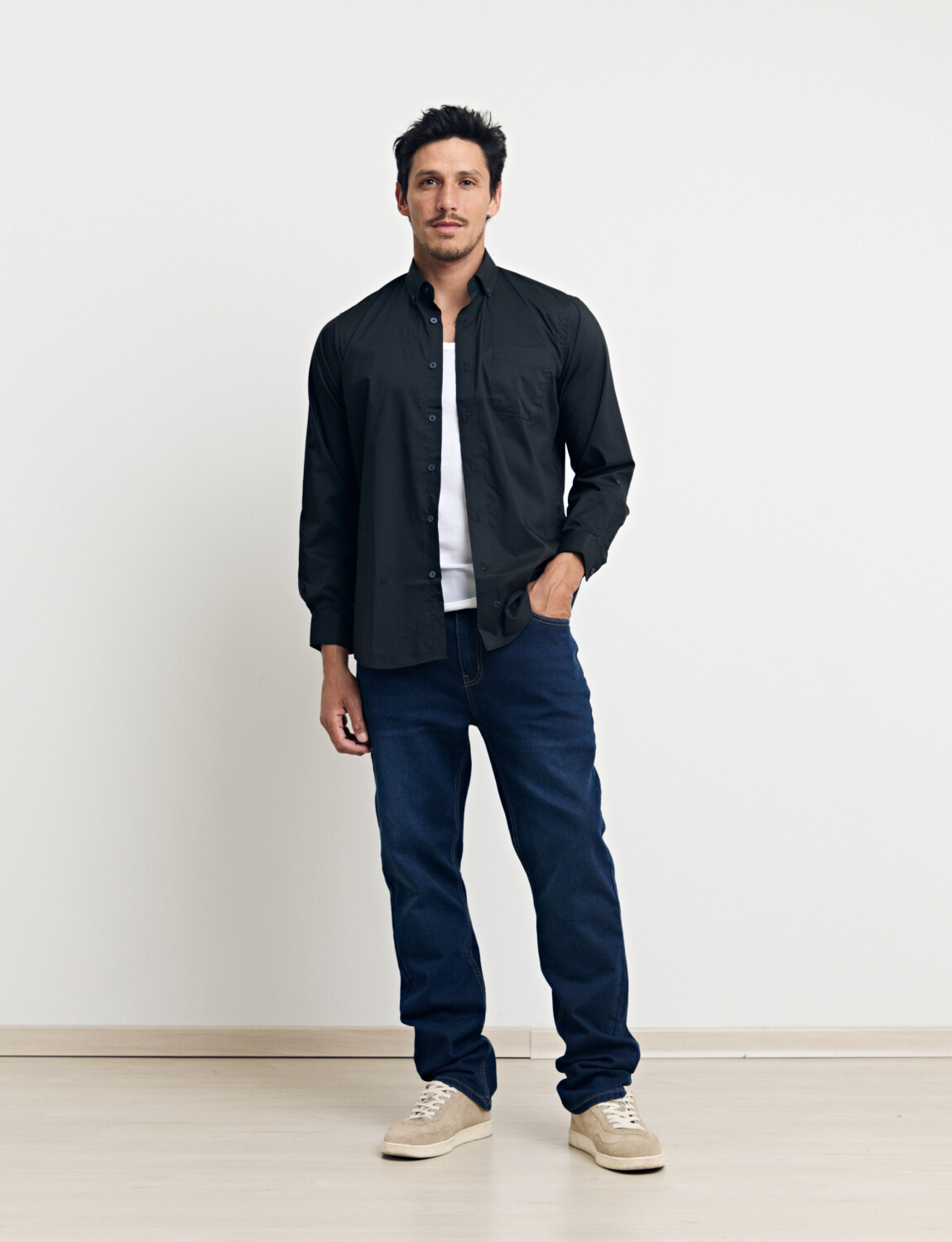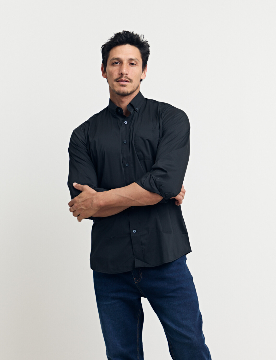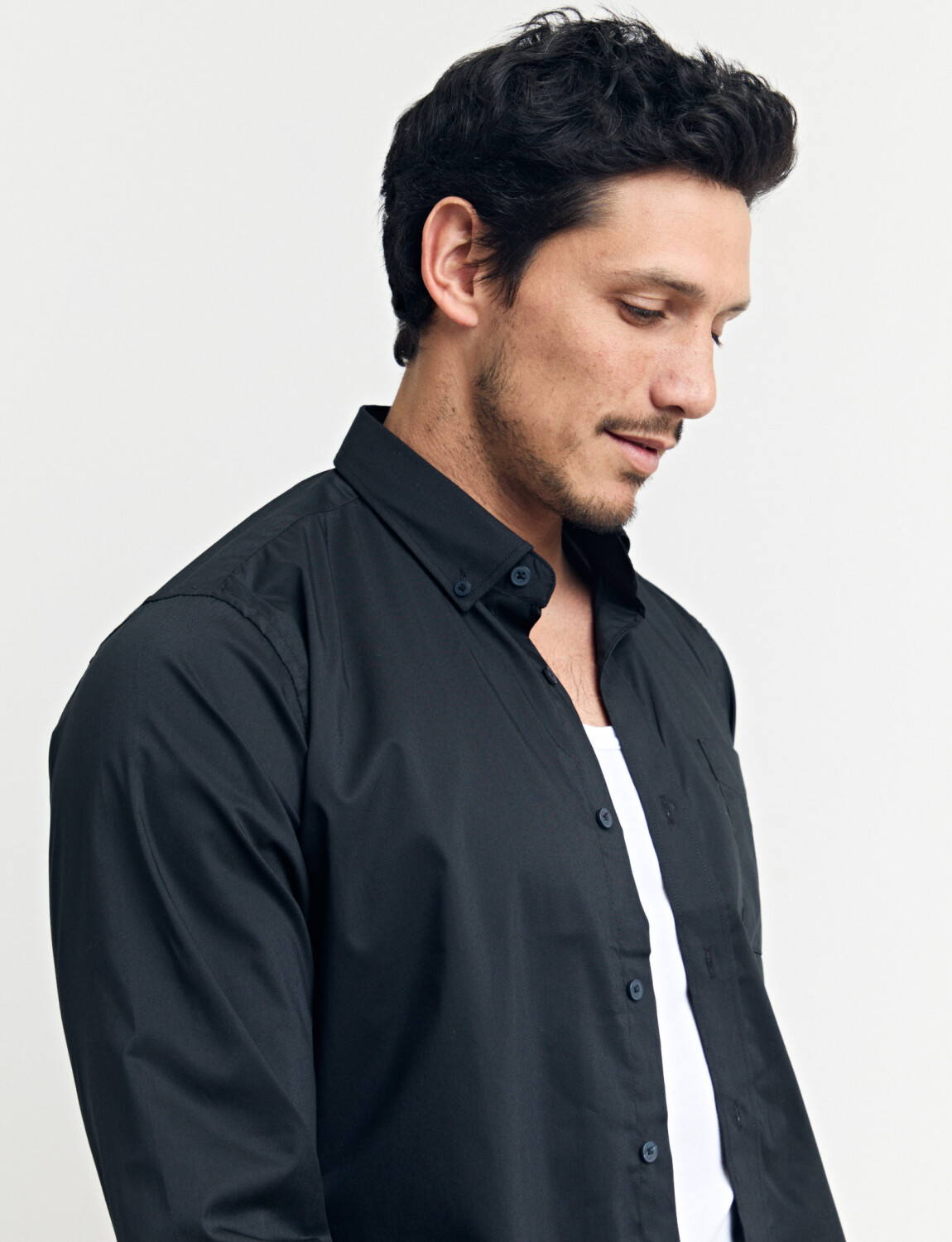 Camisa de algodón con elastano de fibra larga que produce un color brillante y sedosidad al tacto.