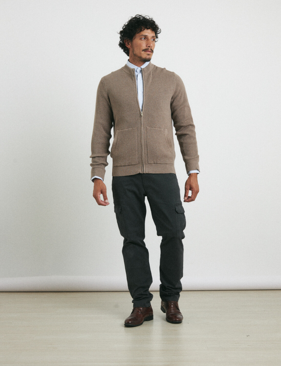 Cárdigan con cierre frontal a tono con cursor metálico. Adaptable para ocaciones casuales como para más formales. Composición 100% Algodón