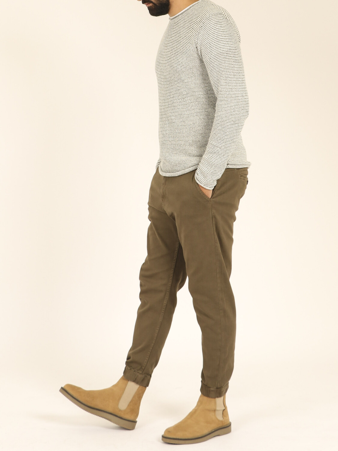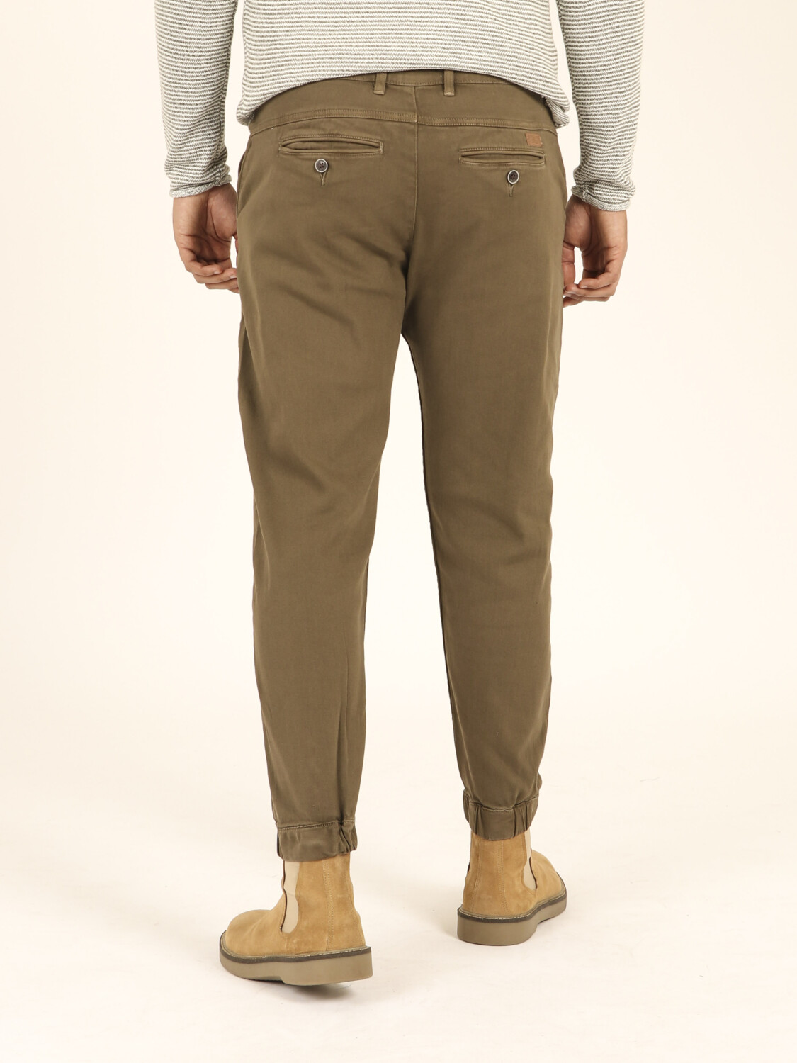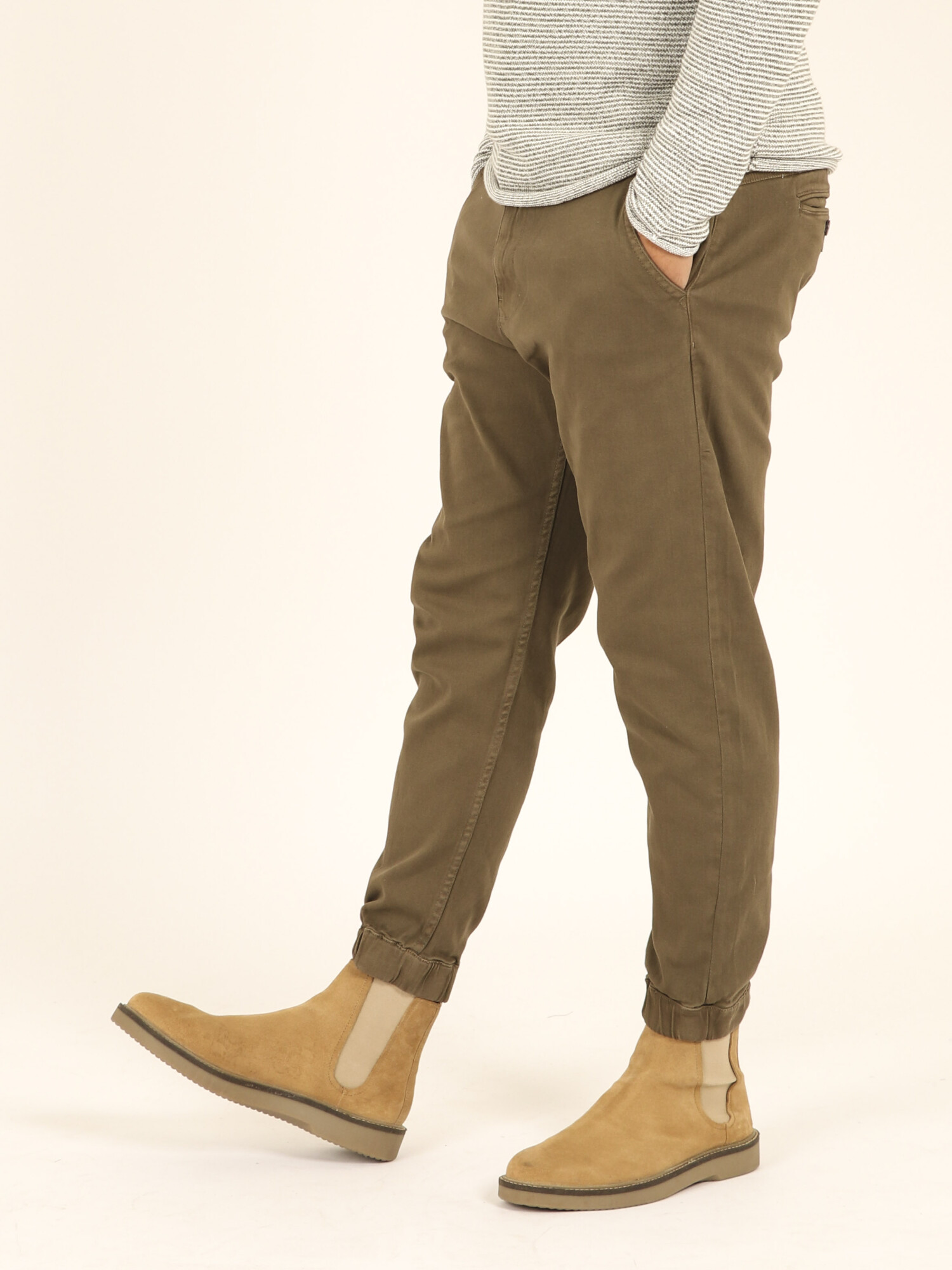 Pantalón tipo babucha con lavado pigmentado, puños con elástico.