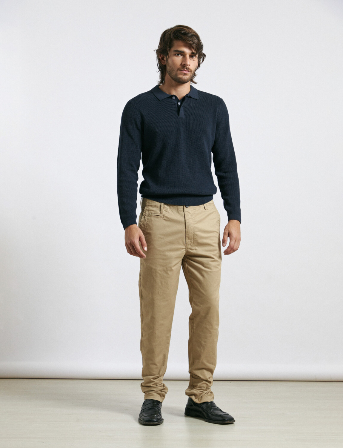 Las medidas del modelo son: altura 186cm, pecho 103cm, cintura 75cm. Y está usando un talle 52.