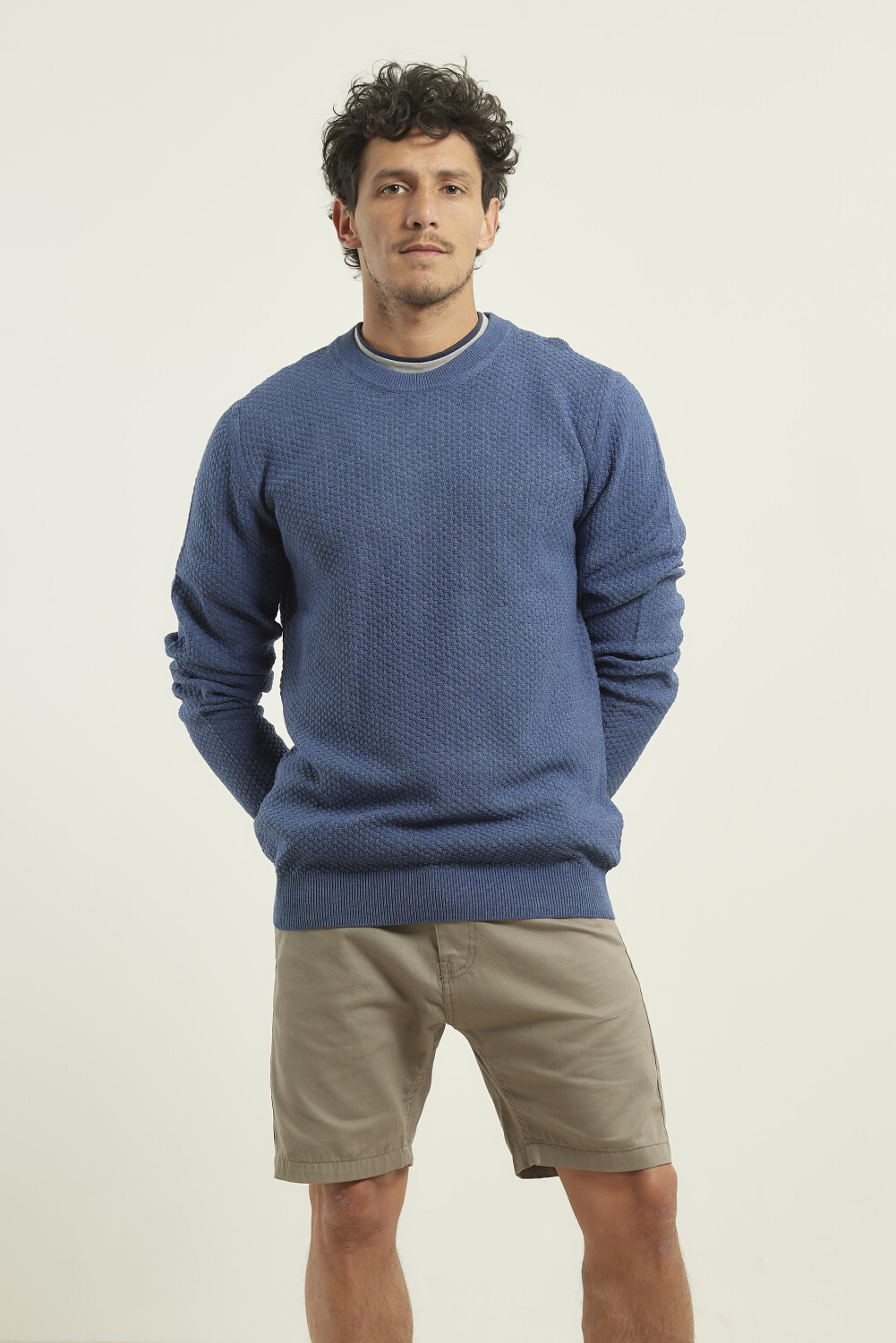 Tejido con estructura fantasía tipo punto abeja. Cuello redondo. Manga larga.